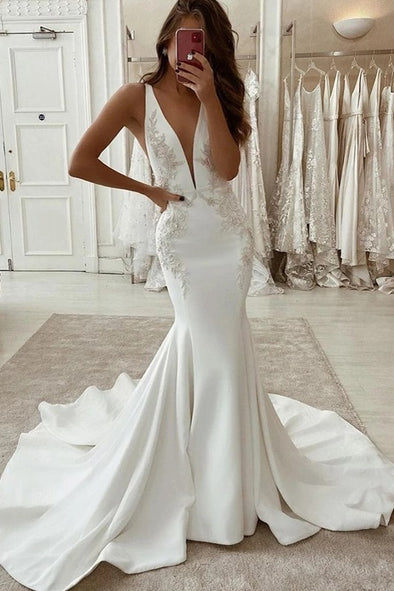 Long Sleeve Lace Wedding Dresses Deep V-Neck DW515